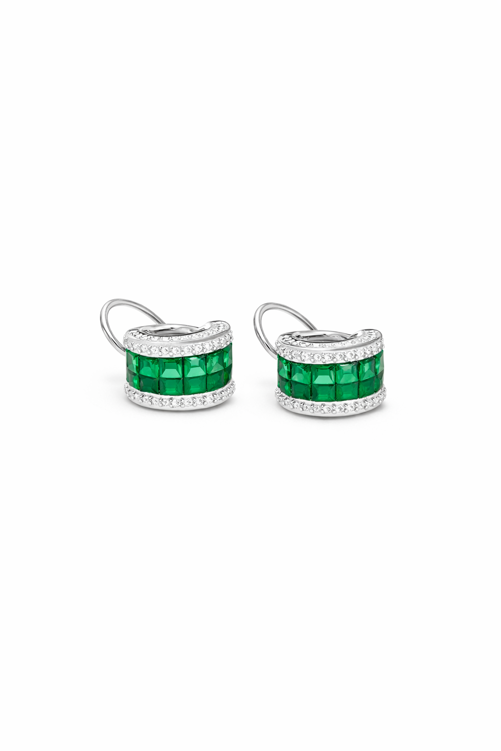 These luxurious huggie earrings are a statement of elegance and sophistication. Crafted from pure 925 sterling silver and adorned with stunning square-cut emeralds and sparkling diamonds, these earrings offer a perfect balance of beauty and craftsmanship. Imported directly from Thailand, each pair is meticulously designed to elevate your look, whether you're dressing up for a formal event or adding a touch of refinement to your everyday wear.